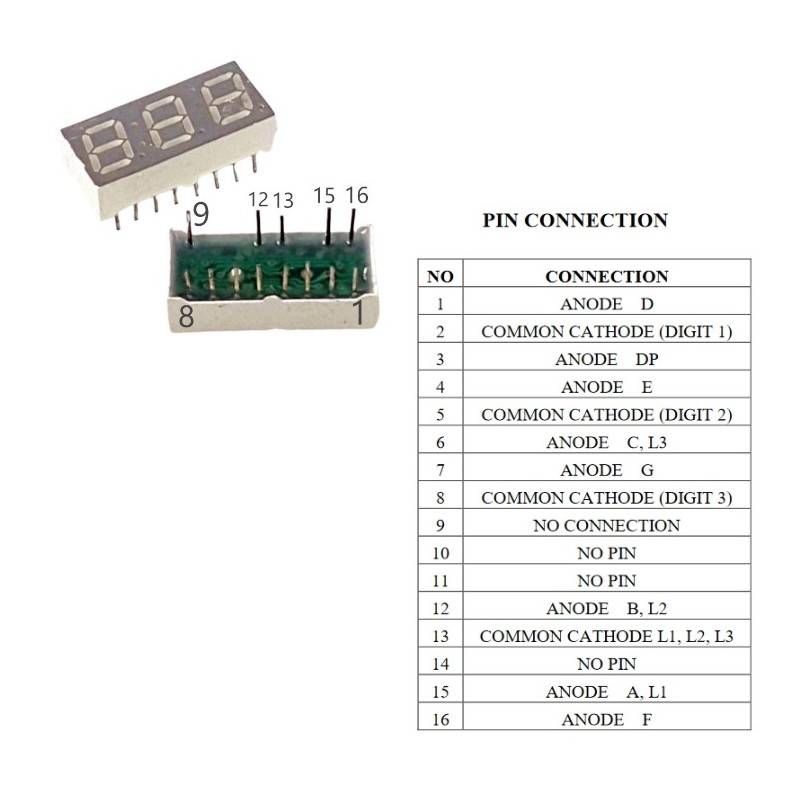 7-Sigment-3หลักสีแดงคาโทดร่วม