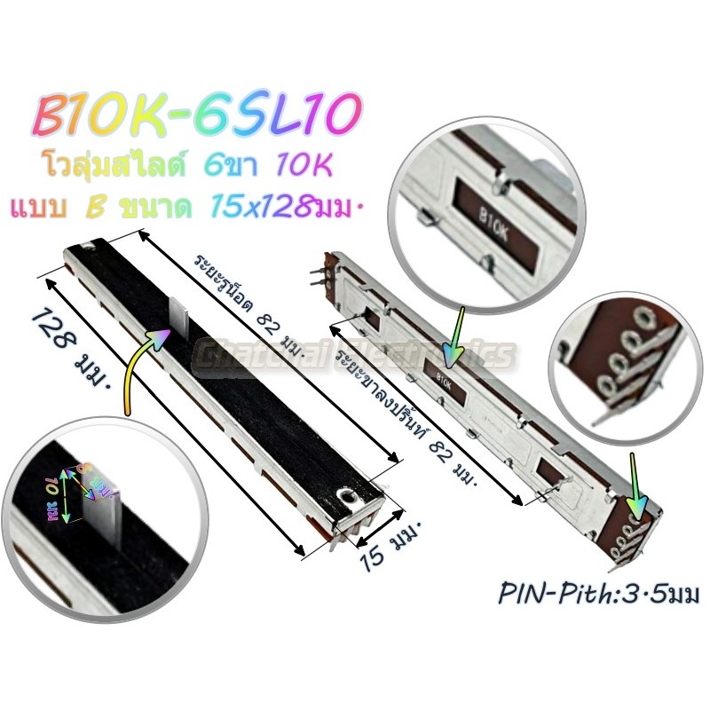 ปรเภทสินค้า : โวลุ่มสไลด์ 6ขา 10K "แบบ B" ,ขนาด 15x128มม. แกนยาว 10 มม.
