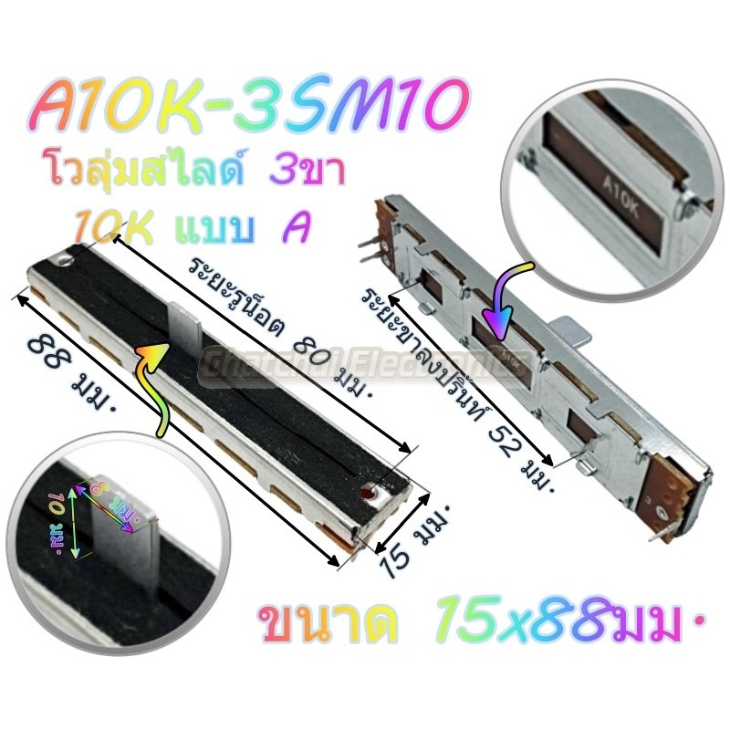 A10K-3SM10 โวลุ่มสไลด์3ขา,10K,15x88มม.